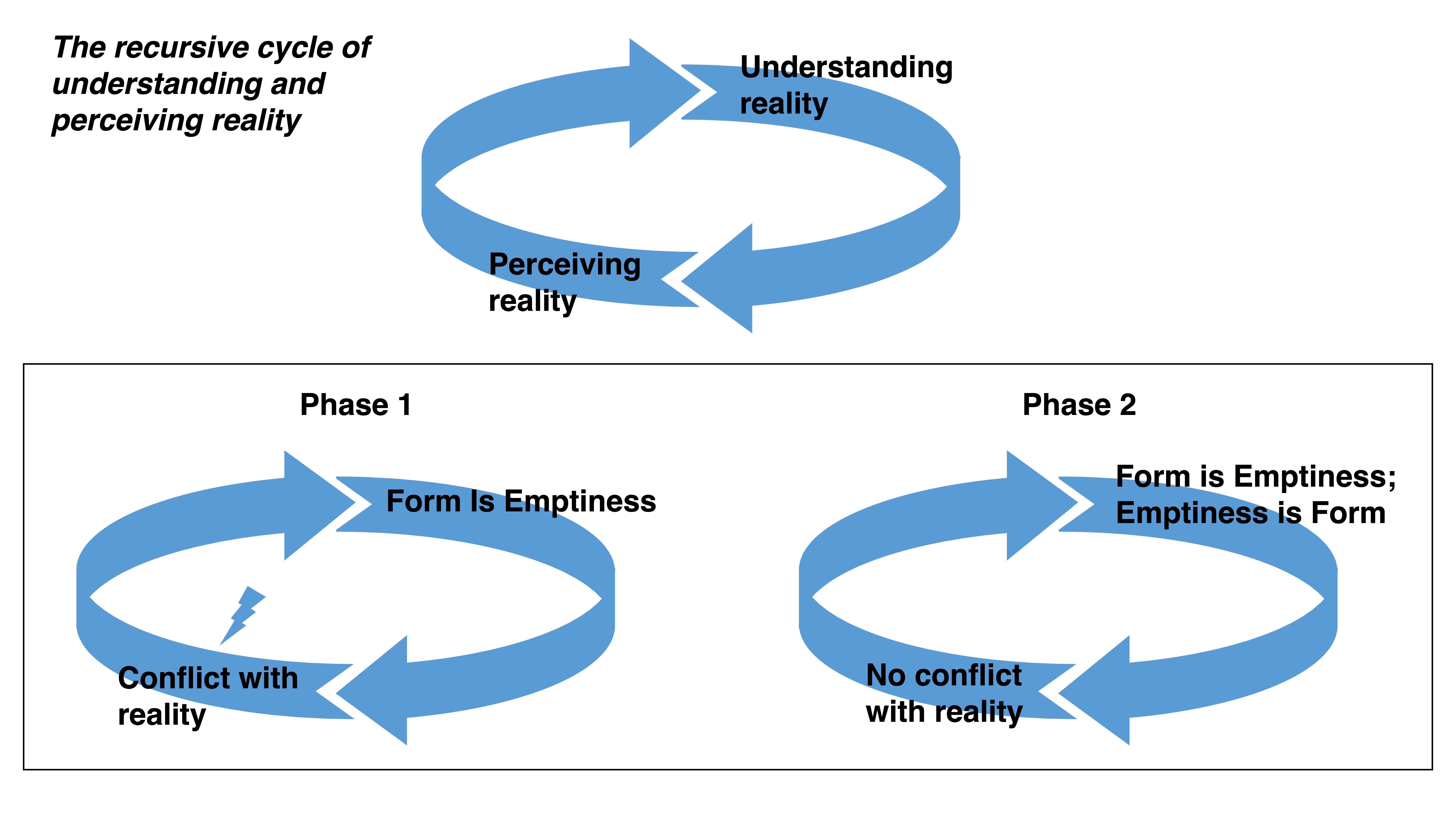 When people first see through the illusion of separation and realize that no phenomenon has inherent existence—no phenomenon exists on its own—they often reject phenomena as illusory. However, since such rejection cannot make the perception of phenomena disappear, which are apparently differentiated, a conflict arises between their nondual worldview and their perception of phenomena. They have not yet understood how Emptiness can be Form or the One can be the Many (see Figure 1).